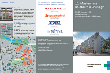 sehr herzlich laden wir Sie zu unserer Masterclass nach Erlangen ein. Die kolorektale Chirurgie hat eine lange Tradition in Erlangen. Diese Tradition führen wir kontinuierlich fort und passen sie unter Verwendung der modernsten Techniken an die Herausforderungen der aktuellen Chirurgie an. Keine Weiterentwicklung hat die kolorektale Chirurgie in den letzten Jahren mehr geprägt als die Orientierung an den anatomischen und embryonalen Schichten der Complete Mesocolic Excision (CME) und der Total Mesorectal Excision (TME).